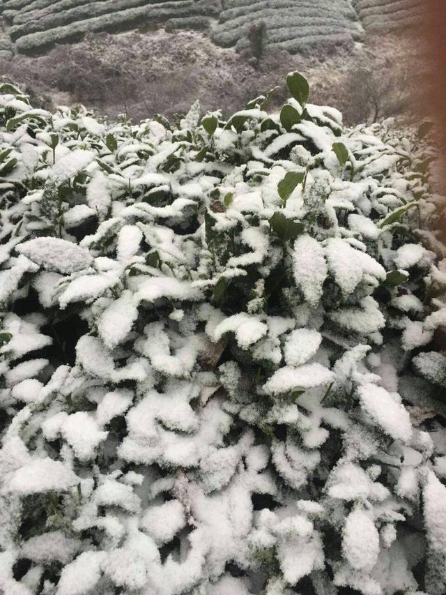 一颗颗茶树,不惧大雪,不惧严寒,仍昂首挺胸傲立在这寒冬风月之中,一片片茶叶,仍透过寒雪冰衣,像我们展现出它那妖娆的英姿。
